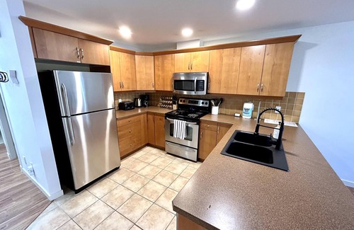 The well-stocked kitchen with everyday essentials, and the private laundry to make you feel at home. A variety of board games, puzzles and books for adults and children in addition to the TV, DVD player and wireless internet, adds a nice touch for indoor entertainment. All bedding and everyday consumables provided for comfort and convenience! Supplies we provide are toilet paper, paper towel, garbage bags, dish and hand soap, laundry soap and fabric sheets, dish scrubber, cleaner, coffee and filters, tea, sugar, cooking oil, foil and some common cooking spices.