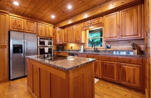 Come vacation at this incredibly elegant and immaculate cabin with goose bump-invoking views. Serenity is a 5 bedroom 5.5 bathroom lodge with gorgeous architectural touches that will simply awe anyone.