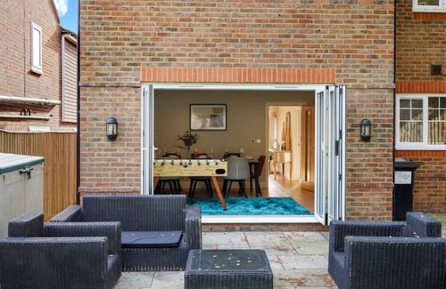 Uncover modern comforts in our 5-BR Ascot retreat, perfect for LONG-TERM stays. This stylish, newly built home with a fully equipped kitchen offers tranquility close to top UK attractions( 15-min drive) . Ideal for family relocations, insurance claims, and extended escapes, it's nestled in a peaceful rural area. With high-end furnishings and entertainment options, including a spacious garden and 2 off-street parking spaces, it's your ideal long-term haven.