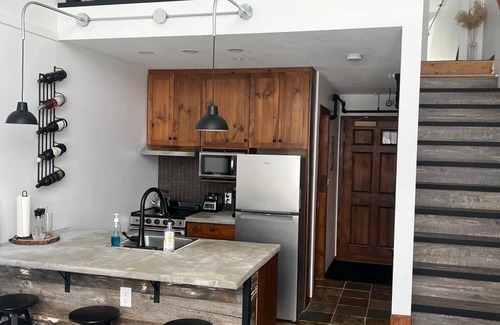 * Newly renovated loft suite comfortably sleeps 4 people with 1 queen bed, a sofa bed and full bathroom