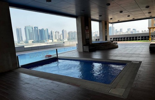 Yes, this Manama condo has a swimming pool. Check the Facility Overview section for details about the pool and other available facilities.