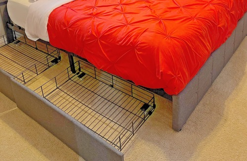 House is equipped with 4 Queen sized beds, 1 futon & all 55” smart TVs with all the latest apps installed for your entertainment. Enjoy the theater room with family, friends, & coworkers! The large theater screen & projector easily connects to your laptop.