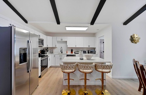 Sleeps 17 people!! Your own Stunning luxury home with its own backyard beach! Resort Style Heated Pool! Poker table, Pickleball, Pool table, Mini Golf, Chess, Dominoes games, Aw did we mention Cornehole and surfboard Bar! Enjoy the Outdoor Gazebo with a Waterfall! OMG! Enjoy West Tampa, the immaculate kitchen, 4 spacious bedrooms, 1 game room, 2 full baths and an outdoor shower, solar heated! Minutes away from downtown, Zoo Tampa, USF, Bush Gardens, Adventure Island, Hyde Park, Raymond James Stadium, Airport, International Mall, Shopping centers, Malls, you will love the conveniency of this location, and all the games, see you soon!