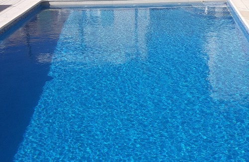 Large 12m x 6m private swimming pool two meters "literally" from the apartment.