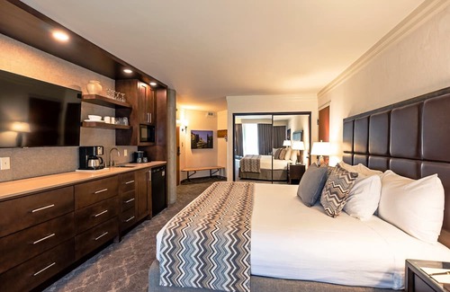 A Pinnacle condominium consists of 2 bedrooms and a kitchen room providing 1,682 Sq. Ft. of living space with accommodations for up to 10 people. Each bedroom provides a king size bed, as well as a queen size sofa bed. The kitchen room also has a queen size sofa sleeper. The kitchen consists of a refrigerator, microwave, dishwasher, stove, oven and coffee maker. Additionally, there is a partial kitchen with a microwave and small refrigerator in each bedroom. Each bedroom has a 55" TV with an in wall HDMI port for easy access. The living / kitchen area has a 32" television with DVD player. All three rooms have balconies, one with a 4 person hot tub which is part of the kitchen room.