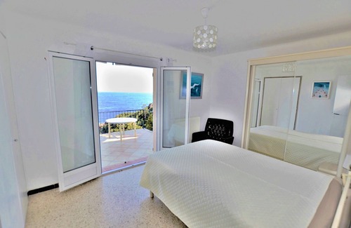 Villa panoramic view of the sea, set on the rock; on large ground with shaded terraces; calm assured; security with code gate; 7 people max; 1 garage; 2 bedrooms with 2 beds 140 and 90 + 1 sofa bed: dining room, kitchen: oven, halogen plate, dishwasher, 2 refrigerators. Bathroom: Italian shower. Double glazing, central heating. Large terrace with electric awning. Pétanque, mini-billiards, ballads. Beach and harbor, restaurants 2 km: 15 minutes walk; shops 10 minutes by car. A place of rest par excellence.