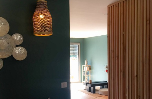 Located in the heart of the golden stones 35 minutes from Lyon, in a small village with local shops, "L'Abri" is a real intimate space created for your well-being.