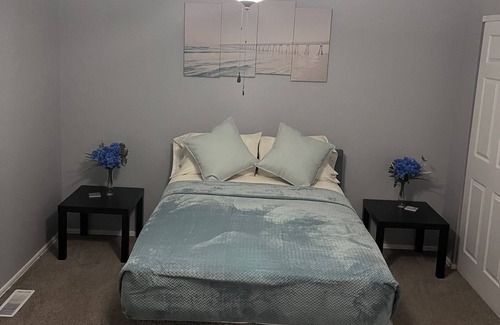 This condo is located on the lower level, is very spacious, includes Wi-Fi, Netflix, Full Kitchen and access to laundry area upon request. Full size bed in each room that sleeps two people. Master bedroom has TV and half bath with standing shower. Living room has TV with Netflix, No TVs in the other two bedrooms. This space has everything you need. Ideal for working professionals and families. This is not a party space. There are police officers that live in the building, so be mindful of huge gatherings, smoking and loud music.