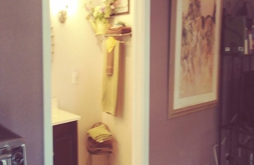 There is plenty of room to relax and enjoy your Florida vacation. Private entrance with small private patio. The kitchenette is stocked with dishes, coffee maker, utensils, pots & pans, cook top burners, toaster oven, microwave, fridge with freezer. It comes stocked with seasonings, creamer, sugar & napkins.