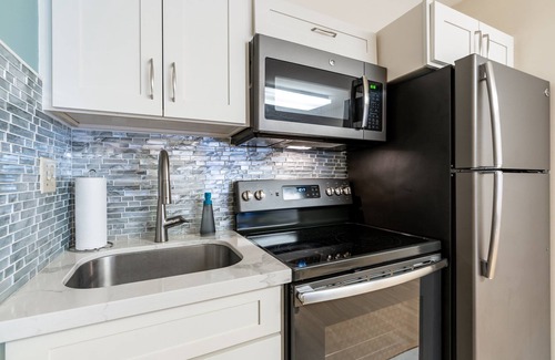 The unit features a modern kitchen and bathroom with new appliances, sleek cabinets, and elegant quartz countertops. With a spacious floor plan, it's perfect for both business travelers and those seeking a unique alternative to Waikiki.