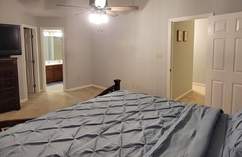 Enjoy your stay at this spacious and relaxing home. Waverly Place and Crossroads shopping center are nearby. Only 8 min from WakeMed Hospital. For your entertainment, there is a pool/ping pong table and a hockey table in the garage. If your looking for a comfortable home for your family or friends to relax in, but would also like to have fun in the home, then this is the right home for you!