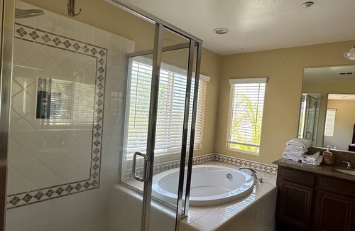 Nestled in a tranquil gated neighborhood in San Diego, our home is a dreamy oasis. Boasting five plush cozy bedrooms and four bathrooms, it's a haven of comfort. Enjoy fun-filled moments with either the pool or foosball table. Or head out into the backyard and enjoy the serenity. The children can let loose too with a playstructure and basketball out back! Access to a nearby community pool, tennis court, and playground adds to the allure. The peace here is palpable - your perfect getaway awaits.