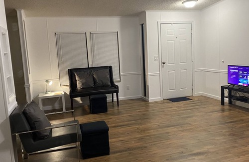 Mobile home with 3 queen beds and walk in closet. Master bedroom with bathroom. Washer and dryer inside property. Fully furnished including kitchen utensils. Smart tv in living room and parking next to property. Small bbq available with outdoor chairs. Park right across the street.