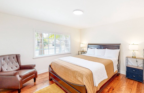 Spacious, single-level home with a large yard, gas fireplace, & washer/dryer is located in Goleta. Spacious, single-level home with a large yard, gas fireplace, & washer/dryer provides accommodation, featuring View, Bedding/Linens, Wellness Facilities, among other amenities. This House features View, Bedding/Linens, Wellness Facilities, to make your stay a comfortable one.