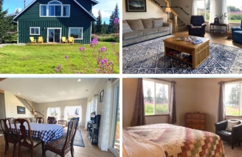 Expansive westerly views of the Cook Inlet, active volcanoes and majestic sunsets await you. This home boasts 3 very spacious bedrooms to accommodate all of your sightseeing gear and room to stretch out. The chef's kitchen is a delight to prepare your fresh fish and lavish breakfasts. Having been built in 2021, you'll find exceptional stainless steel appliances, well maintained facilities and a stacked washer and dryer for your stay, plus enough room to park your camper!