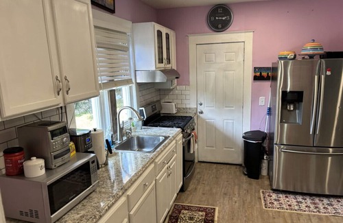 This beautifully updated home is the perfect base for your group stay in Akron. With a spacious open floor plan, an updated kitchen, and modern appliances, you’ll feel right at home. The house features three bedrooms: a queen room, a twin-over-full bunk bed room, and a private room with a twin bed—ideal for a family or small group of friends.