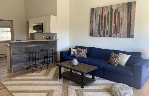 The home as a garage that fits two cars, a hot tub, outdoor firepit and a wood stove as well as a brand new gourmet kitchen, pantry and brand new bathrooms. Sheets and towels are provided. All furniture is brand new. Washer and dryer available.