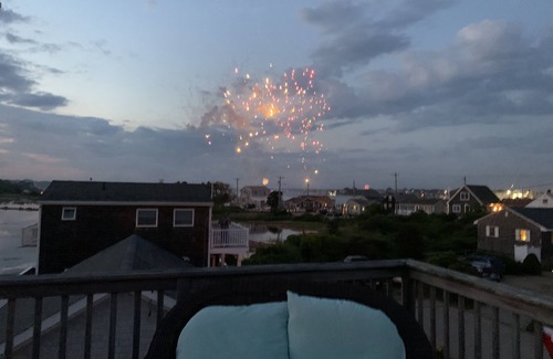 Beautiful cottage located 2 min walk to beach and dog beach, restaurants & marina. New kitchen w/all amenities, washer/dryer & OUTSIDE SHOWER. Front deck, back deck and roof deck w/amazing views of harbor, ocean and marsh.