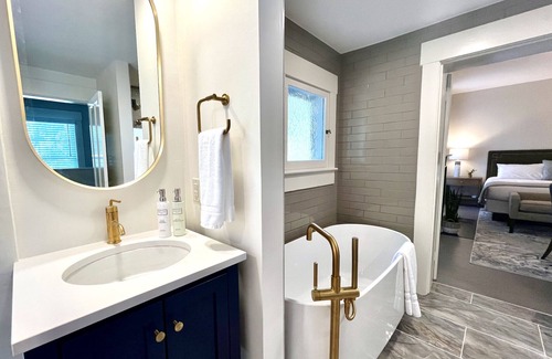 Designed for the guest who seeks a more extensive accommodation, this 2-room suite offers a king bed, dressers, and dining table. The redesigned bathroom is equipped with walk-in shower, free standing tub, water closet and twin vanities. A separate living room provides additional comfort with wet bar, television, chair, ottoman, and queen sleeper sofa with a Tempur-Pedic mattress. The Spencer Suite is accessible from the main stairway, or through a private staircase in the Butler's Pantry.
