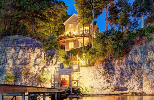 This is a unique setup for couples or families to stay in a beautiful lakeside home with breathtaking views and lake access. Locke's Glen sleeps 10 adults plus kids.