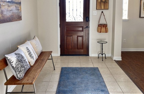 Although in the city, you won't be able to hear traffic from Stone Cottage! The backyard has a beautiful view of the highest hills in North Texas with falcons soaring. Access to trails is just a one minute walk from the home. The space is family friendly with a playroom and a nursery! The kitchen is fully stocked with all you’ll need for cooking or baking. Enjoy the peaceful space and tour the city with countless things to do!