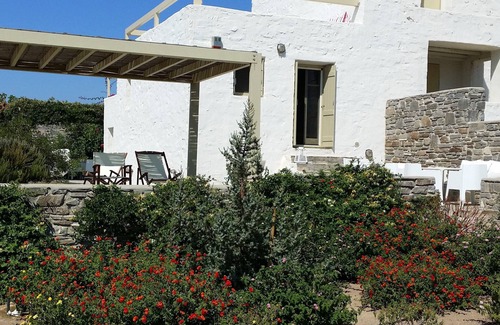 Our stone sea view house offers the perfect tranquil environment to relax and enjoy the beautiful island of Paros. The stone house has a shady garden that you can enjoy all day, a large swimming pool (shared) and an amazing sea view. Beautifully furnished and decorated you will enjoy the inside as much as the outside. 1 sitting room, 2 bedrooms, 1 bathroom and a fully equipped kitchen offers all the amenities that you need. Within walking distance you can enjoy a sandy beach and you can eat in the traditional nearby tavern that offers local cuisine and fresh fish. You can find nearby (5-10 minutes driving) traditional villages next to the sea with lots of places to eat, drink and relax and the most beautiful beaches on the island.