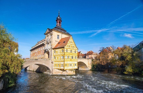 The studio apartment Ferienwohnung 4 is located in Bamberg and is perfect for an unforgettable holiday with your loved ones. The 35 m² property consists of a living/sleeping area, a kitchen and 1 bathroom and can therefore accommodate 3 people. Additional amenities include a TV. This accommodation does not offer: Wi-Fi.