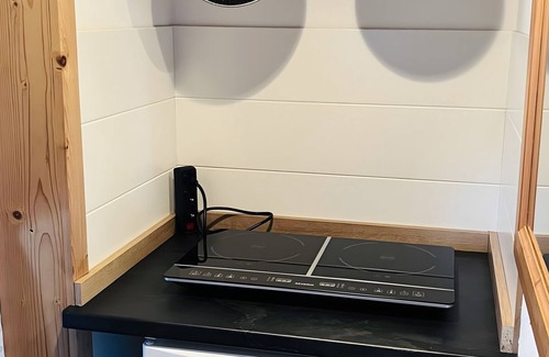 - Small, well-equipped self-catering kitchen with 2-ring hob and mini oven outside the sleeping area