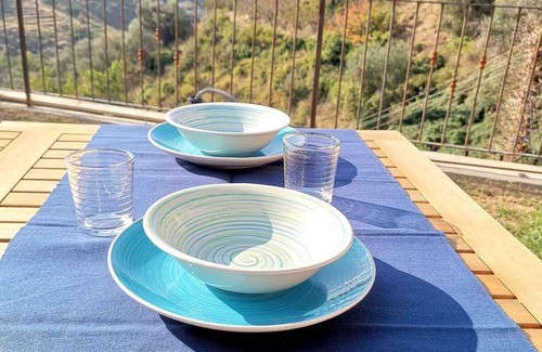 The studio is located in a terraced house built in 2019 and is furnished in a modern and functional style. The property is located in a holiday home area, on the outskirts. Also due to the view over the sea from the property and its quiet and sunny hillside location the domicile is popular. Available for shared use: sunbathing lawn, parasol, sun lounger, barbecue facilities, terrace, garden furniture and courtyard.LocationPompeiana. The studio is located on a enclosed garden plot with flowers, shrubs and trees, bordered by a fence. The landlord lives in a separate building on the property. The accommodation is a studio apartment in a marine style, bright and relaxing, where white tones predominate, the feeling is that of living in a shell and in the evening, from the valley you can hear the sound of the sea not far away. Ergonomic and essential furniture that will not make you miss anything, suitable to be enjoyed comfortably by 3 people. Garden with sea view outside, swimming pool and private parking adjacent to the house. Very large garden with sea views, swimming pool and private parking space next to the house. In the immediate hinterland, a stone's throw from the sea, towering on a ridge, there is a view of fantastic sunsets in a thousand colors. Access is directly from the main road (asphalted). Parking is available on the property. Specialair conditioning.Facilities: baby cot and iron.For your safety, the accommodation is equipped with CO2 detector and fire extinguisher. PoolAll pools are available for exclusive use. Outdoor pool (usable from early May to early September). Swimming pool NOT ACCESSIBLE Dogsnot allowed. DistancesShopping 600 m, restaurant 850 m, town center 200 m. Nice airport 55 km. San Remo 6 km. Imperia 7 km away In summer: Ligurian sea 2 km in Riva Ligure (beach 2 km in Riva Ligure featuring sand and stones). DivisionStudio, 1 floor, 1 room (including 1 bedroom), 28 sqm, in total 3 beds (including 1 additional bed). RoomThe entrance to your studio is located on the ground floor, is at ground level and leads over the terrace directly into the living room. Bedroom (walk-through room) with 1 double bed, 1 additional bed on couch/sofa, access to the balcony and or with 3 single beds. Kitchen in the living & bedroom (walk-through room) with gas stove (4 flames), oven, fridge and coffee machine. Bathroom with shower, 1 washbasin, WC and window. Terms of lease and pricesIncluded in the priceOutdoor pool, parking place, electricity, gas, water, pool. Side costs-Additionally(Payable when booking)/final cleaning obligatory 57 € per object per stay. laundry package (hand towel, bed linen) on request 15 € per person per stay.Costs on the spot:/Obligatory:bed linen to bring along. local tax by local tariff (if charged).On request:air conditioning 0,30 € per kilowatt hour based on usage.Deposit:EUR 100,-/object