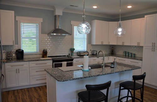 This gorgeous 3 year old single family house (not a duplex or condo) is perfect for your vacation. Featuring 4 bedrooms (2 king, 2 queen and a set of bunk beds) plus 3 full bathrooms. A huge kitchen with white cabinets and granite counter tops. The great room has a U shaped sectional couch with a chaise lounge. The large dining table seats 8-10 comfortably. All furniture and décor is high end and just stunning to see.
