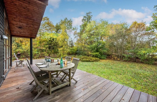 When the weather is nice, you can retreat to the great wooden terrace. Let the kids run around on the green area while you watch from the garden furniture or relax and read your vacation book.