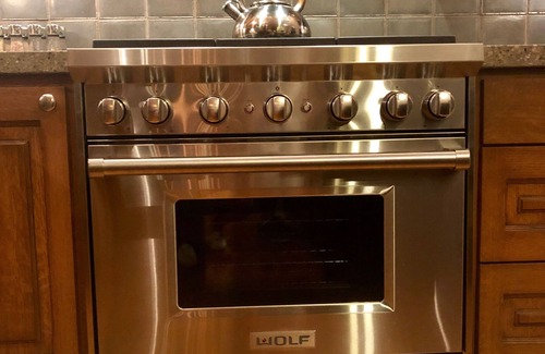 The kitchen is open to the great room and dining area and a chefs dream in that it has a Wolf range and two full dishwashers. You can cook a special meal and still be with your loved ones! There is a gorgeous wood burning fireplace in the dining area and the great room alike.
