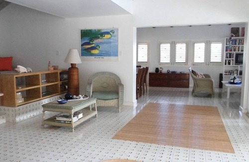 The villa is equipped with WiFi Internet access, standby generator, swimming pool pump timer, garden with fruit trees and tropical flowers and a large lawn. The three bedrooms have private bathrooms and living area, with sofas and sofa beds, and are integrated with the veranda by the pool. The small bedroom has a bunk bed perfect for children. The villa also has a study, a big leaving and dining room and large kitchen and laundry.
