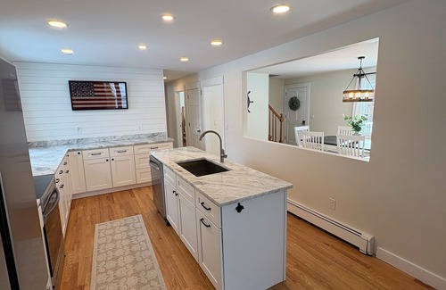 Our spacious 3-bedroom, 2-bathroom home is designed with families in mind, providing plenty of room to relax and unwind after a day of coastal adventures. With a large, sun-filled living room, dining area, mudroom, and a 20'x15' three-season room, there’s ample space for everyone. The newly updated kitchen features modern stainless steel appliances, a coffee maker, ice maker, and toaster to ensure your mornings start off right. The home also boasts stylish finishes throughout, including fresh paint, hardwood floors, marble countertops, ship lap walls, and smart home features like Alexa, smart locks, and outdoor Ring cameras.