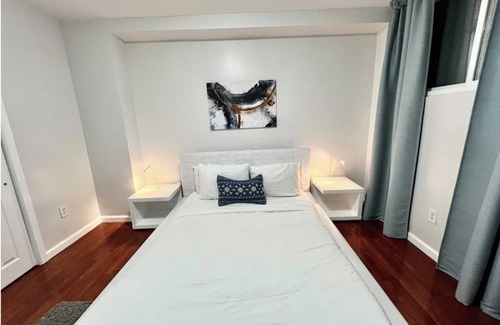 Stay comfortably in Philadelphia at this 1-bedroom apartment. The bedroom features a cozy queen bed, perfect for a good night's sleep. Enjoy the soothing ambiance of the living room, which also doubles as an additional sleeping space with another queen bed. The bathroom offers a relaxing bathtub for unwinding after a day of exploring. We're happy to assist with any questions while you stay at our enchanting apartment.