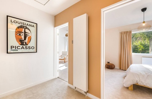 Open plan, social living to enjoy with family and friends. This newly renovated house has been designed in keeping with original 70’s features but with a modern update. Gather around the stylish kitchen island, vintage dining table or get cosy around the fireplace. The house is great for families, groups and pets, with 5 bedrooms a separate snug area, two TV’s and a lovely patio off the living room. The house has 2 King size beds, 2 double beds and one set of adult size bunk beds.