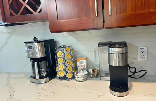 Enjoy high-end furniture, a chic living area, and a full kitchen with everything you need for meals in or on the go. There’s a coffee bar to kickstart your mornings, games for laid-back evenings, and a desk setup with high-speed internet, computer, and printer for any remote work. Whether you're here to relax or stay productive, this space has you covered.