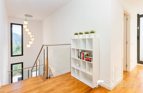Villa Solaris - managed exclusively by Sitges Hills Villas, is newly built to a high standard and is ultra-modern in design. It also enjoys an elevated position in Mas Mila, just a 12-minute drive to Sitges.A spacious outside area featuring a private pool offers wonderful views over the surrounding hills and vineyards. This is a high quality holiday contemporary design home that has been meticulously built to the highest specifications and thoughtfully designed to take full advantage of its privileged position.The extensive use of glass in the design means that every room in Villa Solaris is full of light and enjoys panoramic views across the hills of the Garraf Natural Park. The decor is both modern and stylish, with high quality furnishing and attractive parquet floors throughout.Villa Solaris is arranged over 3 floors as follows;GROUND FLOOREntry to Villa Solaris is either via the ground floor or the top floor. The ground floor features a spacious open-plan living and dining room that has large windows overlooking the terrace and pool area. The living area is stylishly furnished with a large comfortable sofa and 3D TV, DVD Blue Ray and IDOCK with good lighting that creates the perfect ambiance for your holiday.The living area enjoys wonderful views over pine covered hills and lush vineyards. The dining area is spacious and includes a dining table that comfortably seats 8 guests.The kitchen is to the left of the dining area and is fully equipped with all appliances, including oven, microwave, 4-ring hob, fridge-freezer, nespresso coffee machine, kettle and everything else necessary for your stay. The kitchen opens out directly to the terrace and pool area.FIRST FLOORThe first of the bedrooms is located just a few steps up from the living area. This is the master suite with floor to ceiling windows that frame the panaromaic views across the hills. This bedroom features a balcony with comfortable seating that overlooks the pool and terrace area.TOP FLOORThe top floor of the villa is home to a further 3 bedrooms, all tastefully furnished and with a large shared family bathroom. Villa Solaris can sleep up to 8/9 people in 4 bedrooms arranged as follows;BEDROOMSBedroom 1 - Master ensuite with desk, built in wardrobe and terrace with views. Bedroom 2 - Large double, built in wardrobes & terrace with stairs leading to a terrace and pool area. Bedroom 3 - Twin beds with small wardrobe, extra Zbed can be added to sleep 9.Bedroom 4 - Twin beds with small wardrobe.BATHROOMSBathroom 1 – Large shower, washbasin, bidet & toilet.Bathroom 2 – En-suite, jacuzzi bath with shower, washbasin, bidet & toilet.Bathroom 3 – Toilet & washbasin on ground floor.TERRACE AND POOL AREAThe centrepiece of the gardens is a fantastic 8m x 4m swimming pool (with optional pool heating from 280 Euros) that offers wonderful views across the hills. The attractively tiled pool area provides plenty of room for sunbathing and relaxation. Directly outside the kitchen area is a large dining table comfortably seating 10 guests and a BBQ for outdoor cooking. There is also a very cool lounge area with plenty of comfortable seating for relaxing.There is an additional terrace that is accessed from the double bedroom on the top floor, this terrace offers further space for enjoying the sun and relaxing whilst admiring the beautiful views.The rest of the gardens that surrounds the villa have been left in their attractive natural state consisting of limestone rocks interspersed with aromatic Mediterranean herbs and palms.There is secure off-street parking for 2 cars at Villa Solaris. There is also unlimited and free on-street parking at the front and back of the villa and no permits are required.The Sitges Hills Villas team are available during your stay, should you need us.Prices do not include tourist tax of 1.00 € / person / day.