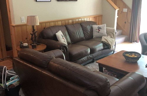 Spacious living room and kitchen with entertainment room in basement. Perfect for families and friends. Short walk to snubber with views of mountain. Short walk to fitness center with available pool and hot tub