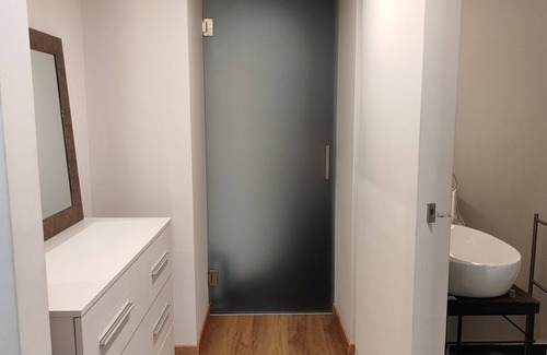 Our apartment has 3 rooms: a modern style kitchen, a living room with natural stone, a bedroom with a private bathroom and a walk-in closet, TV with Netflix and wi-fi.