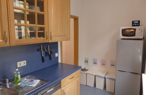The apartment is on the 1st floor and is complete. modernized and has beautiful walnut laminate in addition to the kitchen and bathroom. Of course you will find city guides and all important information, including insiders, about the city of Jena in the apartment.