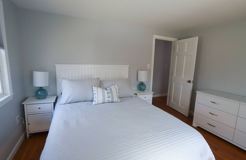 Enjoy this sunny, summer rental only 1.2 miles from South Shore Beach. This home features a new kitchen and bathroom. The downstairs bedroom offers a queen size bed while the upstairs bedroom features two twin beds. Both bedrooms have portable air conditioners. The sunroom features a large tv and comfortable seating. A large deck and yard provides the perfect setting for outdoor meals and family time.