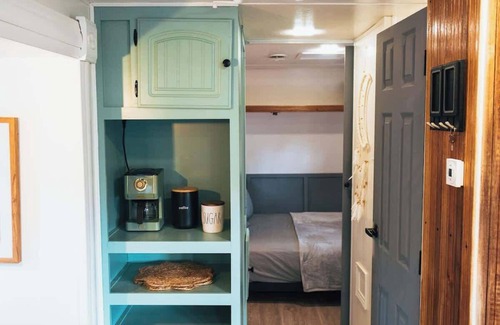 The RV itself has been completely renovated as a DIY project, bringing together comfort, functionality, and an artistic touch. Its small yet cleverly designed interior maximizes space while maintaining a homey atmosphere. The remodel was a labor of passion, with every corner carefully curated to combine modern elements with the charm of rustic simplicity. It's the perfect place for anyone seeking a romantic getaway or a peaceful retreat, away from the hustle and bustle of daily life.
