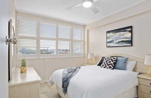 Laden in crisp whites and tile flooring, this newly renovated apartment boasts a chic modern kitchen with all-electric cooking appliances, a central dining area overlooking the ocean, perfect for downing fish and chips, brunching on the run, or pouring a fine local Pinot Gris bound for the balcony, and an epic sunset.