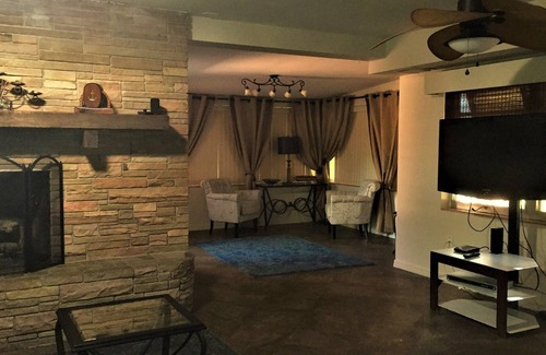 Absolutely amazing completely renovated 2 bedroom, 1 bath cozy cottage. Stone counters in kitchen, includes dishwasher, Keurig coffee machine, microvawe, toaster oven, electric kettle and all the cookware necessary to make a gourment meal. King bed in master bedroom, 50" smart TV with cable, Netflix and Wi-Fi, a game room with pool table for pleasure and a laundry room for your convenience. A fenced parking garage space is provided for your vehicle.