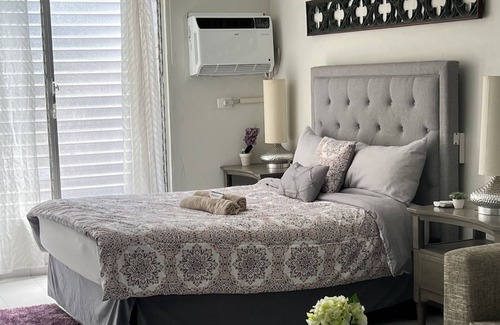 (Sleeps 4) Bright & Airy studio apartment located in the Miramar section of San Juan on a quiet street with gated parking. 7 mins from airport, walking distance to tmobile district center, near restaurants and nightlife. Condo equipped with pillow top queen sized bed for a great nights rest,bedding decor, extra towels and linens, AC unit, 50 inch smart tv,wifi, and sofa bed. Great stay for budget friendly or first time travelers