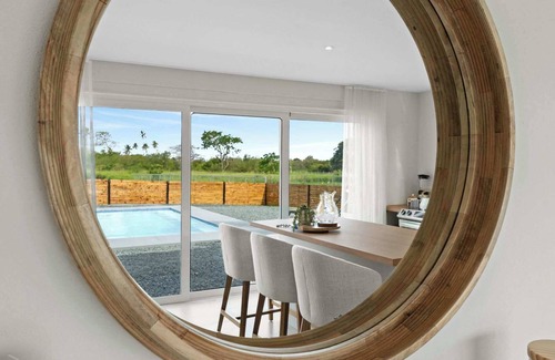 Escape to paradise at Teikirizi, a beautifully designed 3-bedroom, 2-bathroom home with its own private pool, located just a short 5-minute drive from the beach and walking distance to local dining in the laid-back coastal town of Isabela, Puerto Rico. Professionally decorated with care and full of coastal charm, this single-level retreat blends comfort, style, and a relaxed island vibe for the perfect tropical getaway.