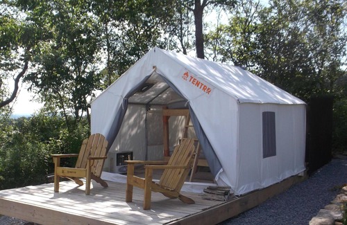 -A large canvas tent with a Queen-size bunk and two air mattresses