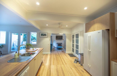 Welcome to Warburton's newest short stay accommodation - a newly renovated four bedroom weatherboard house with large dining area, cozy living space with open fire, breakfast bar and 2.5 bathrooms. There’s plenty of space for you and your family or crew to relax.