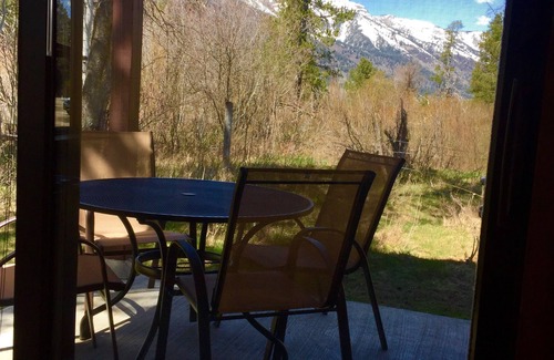 Enjoy moonlit mountain views on summer eves and stargazing on dark moonless eves. Watch the occasional moose wander by, and elk wading in the stream behind the condo. Just ten minutes from the town of Jackson, and five minutes from the Jackson Hole ski area, this location is ideal.